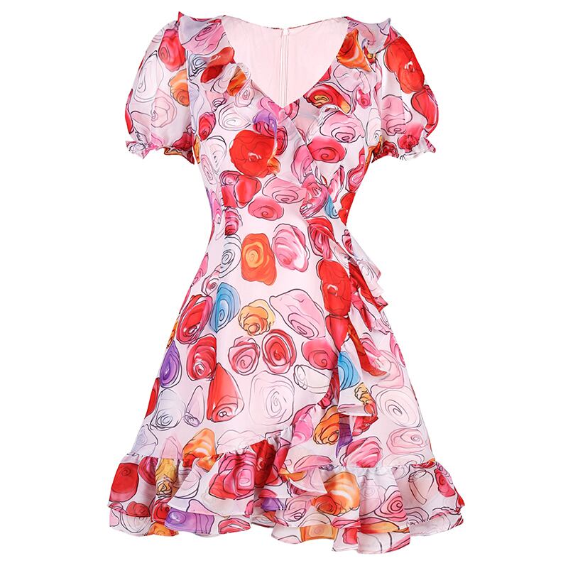 ♥ マルチカラープリント柄ドレス Vネックスカート エレガント ♥♥欧州 ヨーロッパ アイドル ZARA フォーエバー21 GAP H&M WEGO HONEYS MUJI GU UNIQLO dholic babyGAP FOREVER21 Old Navy 韓国 K-POP Kpop 韓流スター BTS TWICE NiziU BLACKPINK ルイ・ヴィトン エルメス グッチ プラダ イブサンローラン シャネル ラフシモンズ BB83921255504 | miel style clothing