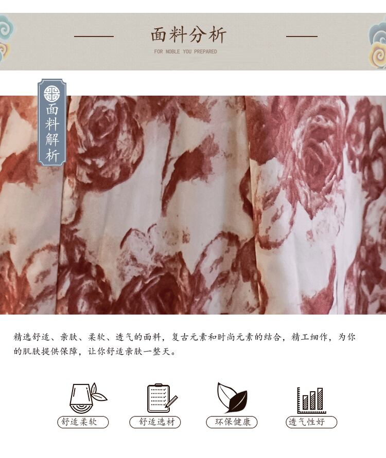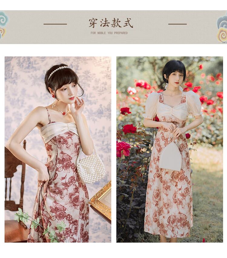 色:パフスリーブバラの油絵ドレス,スリングローズ油絵ドレス