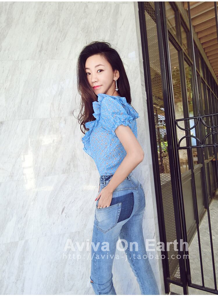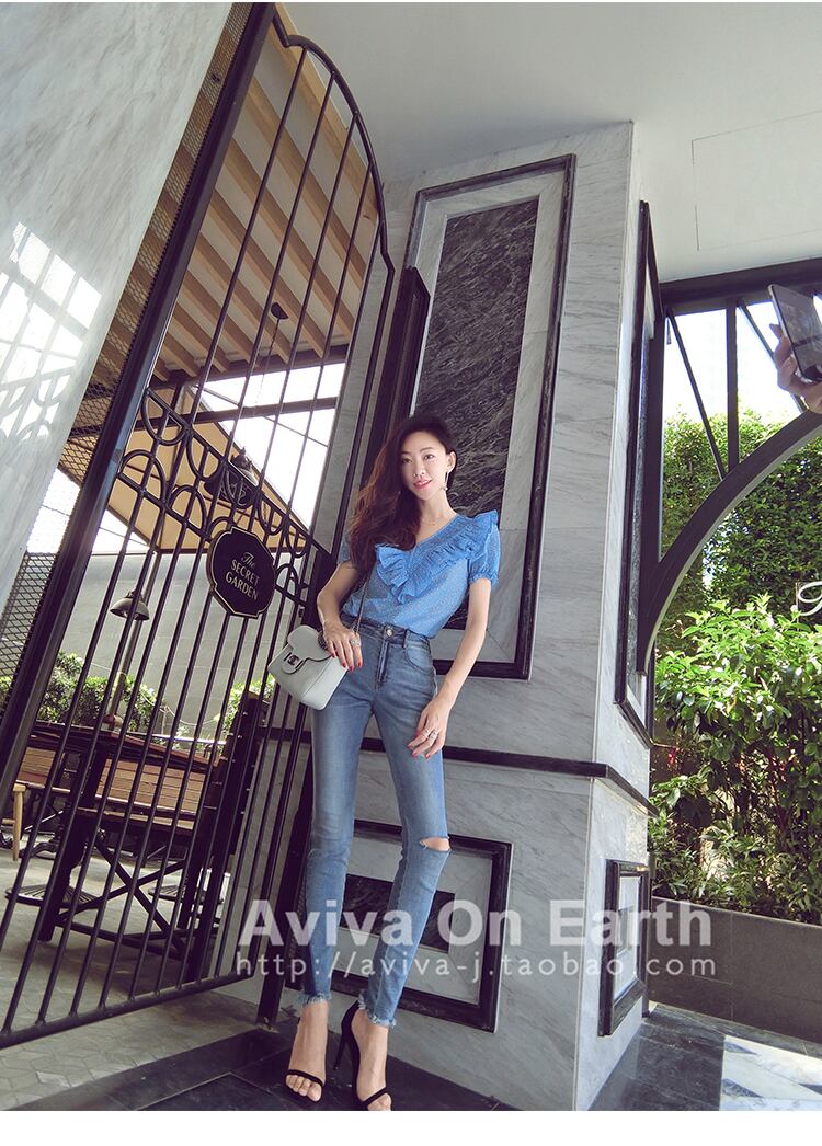 ♥ ブルー薄手スリーブ半袖シャツ トップス レディース ショート ハーフスリーブ 大人ガーリー スウィート キュート カジュアル ♥♥欧州 ヨーロッパ アイドル ZARA フォーエバー21 GAP H&M WEGO HONEYS MUJI GU UNIQLO dholic babyGAP FOREVER21 Old Navy 韓国 K-POP Kpop 韓流スター BTS TWICE NiziU BLACKPINK ルイ・ヴィトン エルメス グッチ プラダ イブサンローラン シャネル ラフシモンズ BB8 | miel style clothing