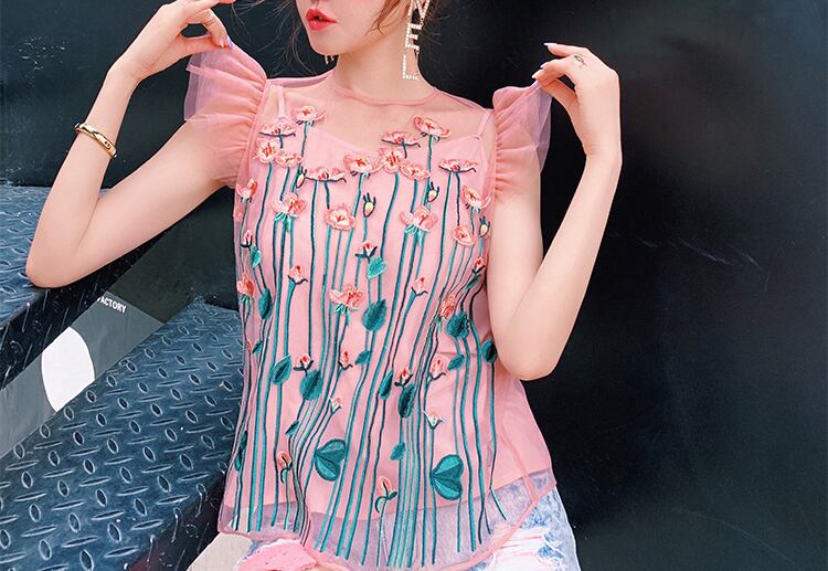 ♥ スリム薄手メッシュシャツ トップス サマーセット ピンク レッド 刺繍 夏物 ♥♥欧州 ヨーロッパ アイドル ZARA フォーエバー21 GAP H&M WEGO HONEYS MUJI GU UNIQLO dholic babyGAP FOREVER21 Old Navy 韓国 K-POP Kpop 韓流スター BTS TWICE NiziU BLACKPINK ルイ・ヴィトン エルメス グッチ プラダ イブサンローラン シャネル ラフシモンズ BB40340991298 | miel style clothing