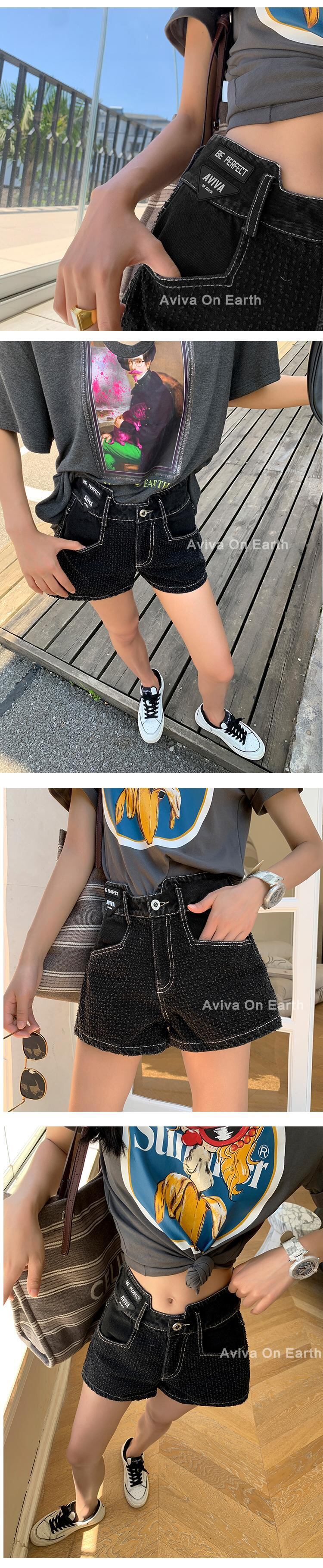色:カスタムかぎ針編みデニムショーツ-ブルー,カスタムかぎ針編みデニムショーツ-ブラック