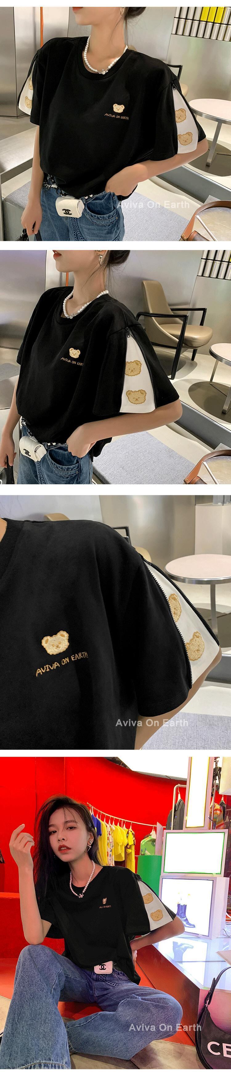 ♥ スリーブジッパー刺繍Tシャツ ♥♥欧州 ヨーロッパ アイドル ZARA フォーエバー21 GAP H&M WEGO HONEYS MUJI GU UNIQLO dholic babyGAP FOREVER21 Old Navy 韓国 K-POP Kpop 韓流スター BTS TWICE NiziU BLACKPINK ルイ・ヴィトン エルメス グッチ プラダ イブサンローラン シャネル ラフシモンズ BB75093431514 | miel style clothing