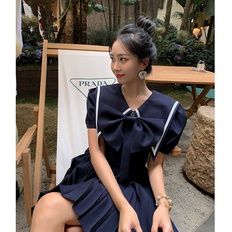 ♥ ネイビーカラードレス サマーウェスト薄手プリーツスカート リボン 夏物 ♥♥欧州 ヨーロッパ アイドル ZARA フォーエバー21 GAP H&M WEGO HONEYS MUJI GU UNIQLO dholic babyGAP FOREVER21 Old Navy 韓国 K-POP Kpop 韓流スター BTS TWICE NiziU BLACKPINK ルイ・ヴィトン エルメス グッチ プラダ イブサンローラン シャネル ラフシモンズ BB53812600920 | miel style clothing