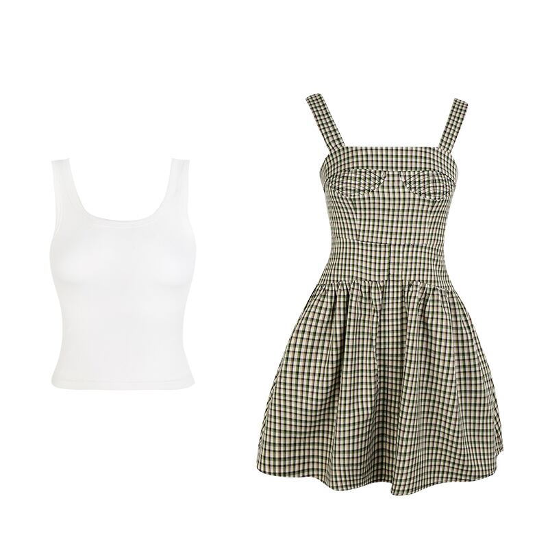 色:ホワイトベスト+グリーングリッドドレススーツ