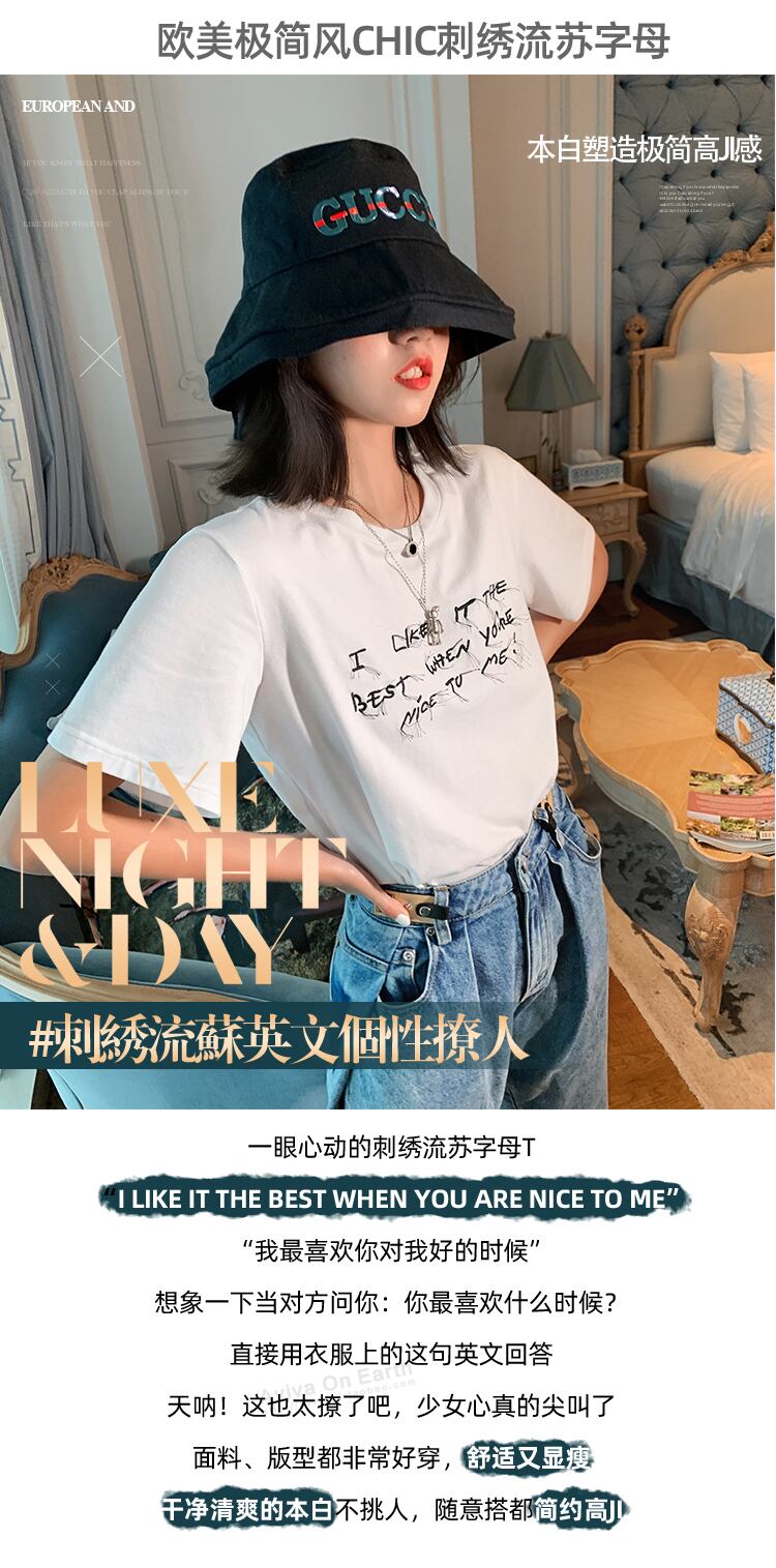 ♥ ホワイト半袖スリーブTシャツ レディースサマースタイルトップス ショート レッド ハーフスリーブ 刺繍 夏物 ヨーロピアン ♥♥欧州 ヨーロッパ アイドル ZARA フォーエバー21 GAP H&M WEGO HONEYS MUJI GU UNIQLO dholic babyGAP FOREVER21 Old Navy 韓国 K-POP Kpop 韓流スター BTS TWICE NiziU BLACKPINK ルイ・ヴィトン エルメス グッチ プラダ イブサンローラン シャネル ラフシモンズ BB22 | miel style clothing