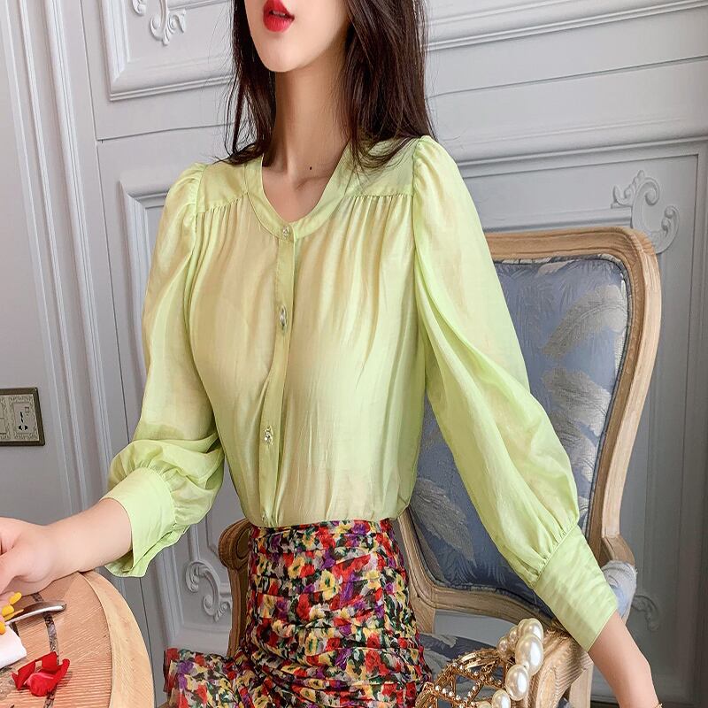 ♥ レディースシャツ スプリングサマースリーブルーズショートブラウス 春物 夏物 シルク グリーン ♥♥欧州 ヨーロッパ アイドル ZARA フォーエバー21 GAP H&M WEGO HONEYS MUJI GU UNIQLO dholic babyGAP FOREVER21 Old Navy 韓国 K-POP Kpop 韓流スター BTS TWICE NiziU BLACKPINK ルイ・ヴィトン エルメス グッチ プラダ イブサンローラン シャネル ラフシモンズ BB44751370224 | miel style clothing