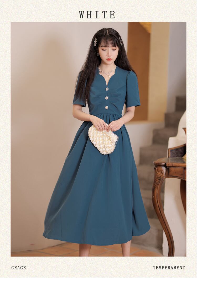 ♥ ヴィンテージスリーブドレス サマーブルーVネック 大人ガーリー スウィート キュート カジュアル 夏物 ビンテージ ♥♥欧州 ヨーロッパ アイドル ZARA フォーエバー21 GAP H&M WEGO HONEYS MUJI GU UNIQLO dholic babyGAP FOREVER21 Old Navy 韓国 K-POP Kpop 韓流スター BTS TWICE NiziU BLACKPINK ルイ・ヴィトン エルメス グッチ プラダ イブサンローラン シャネル ラフシモンズ AA614409