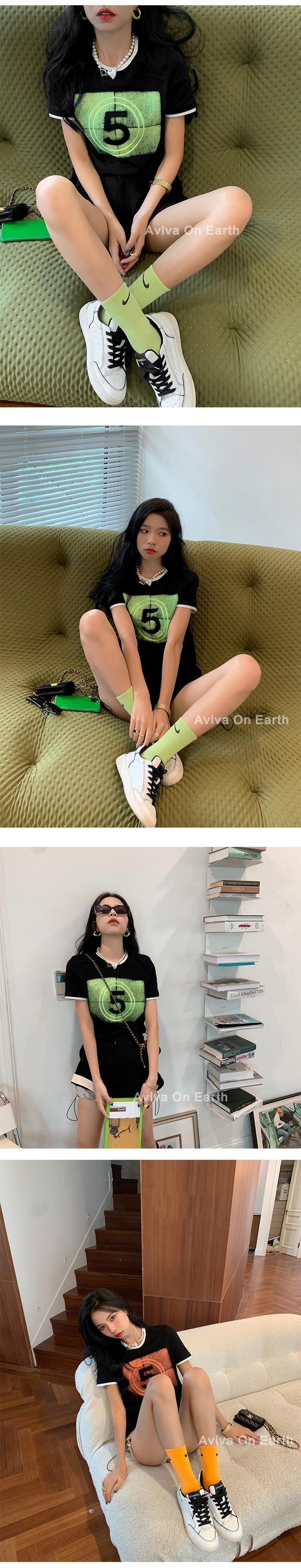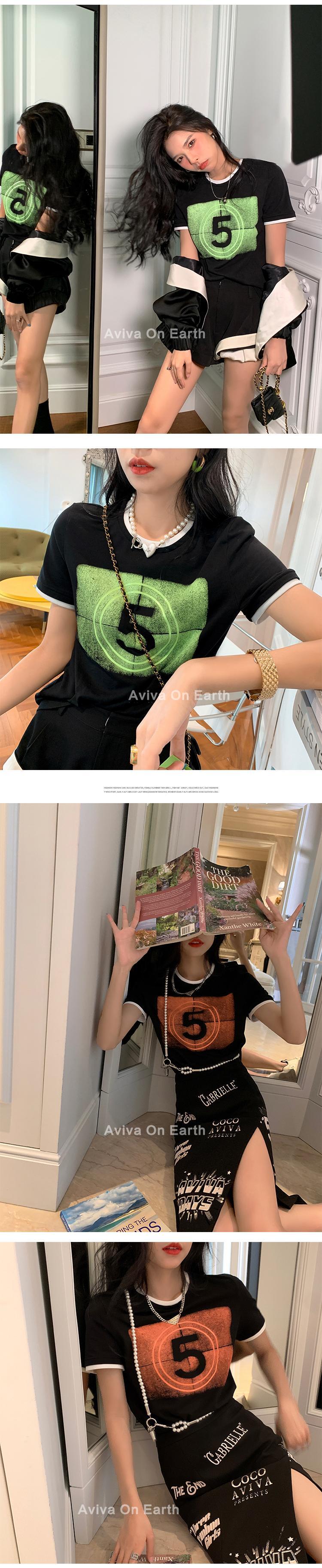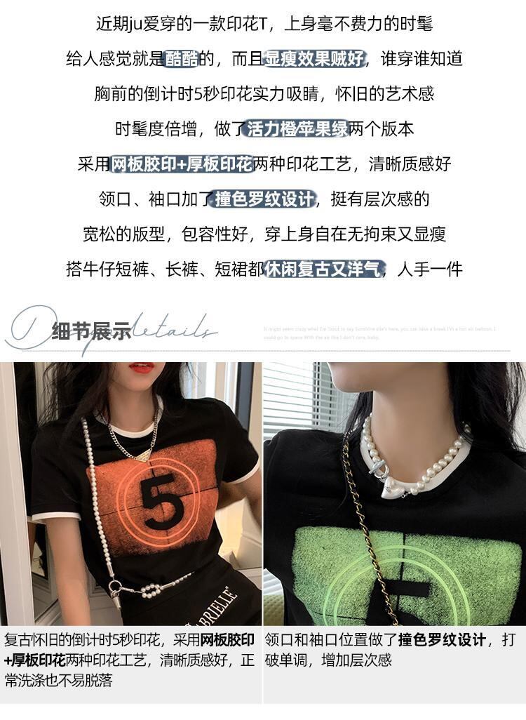 ♥ ブラックプリントショートTシャツ サマー薄手ルーズトップス 夏物 ♥♥欧州 ヨーロッパ アイドル ZARA フォーエバー21 GAP H&M WEGO HONEYS MUJI GU UNIQLO dholic babyGAP FOREVER21 Old Navy 韓国 K-POP Kpop 韓流スター BTS TWICE NiziU BLACKPINK ルイ・ヴィトン エルメス グッチ プラダ イブサンローラン シャネル ラフシモンズ BB72937287617 | miel style clothing