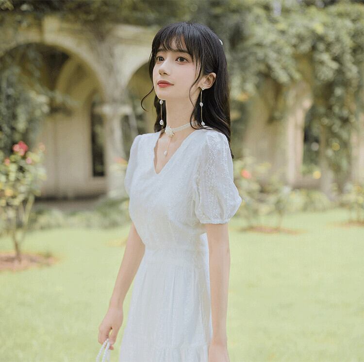 ♥ ホワイトドレス Vネックスリーブ ♥♥欧州 ヨーロッパ アイドル ZARA フォーエバー21 GAP H&M WEGO HONEYS MUJI GU UNIQLO dholic babyGAP FOREVER21 Old Navy 韓国 K-POP Kpop 韓流スター BTS TWICE NiziU BLACKPINK ルイ・ヴィトン エルメス グッチ プラダ イブサンローラン シャネル ラフシモンズ AA12542492135 | miel style clothing