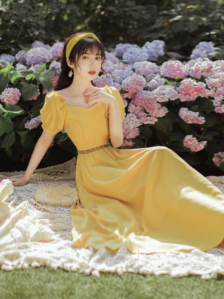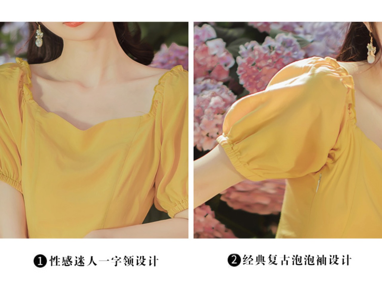 ♥ イエロースリーブドレス サマー 大人ガーリー スウィート キュート カジュアル 夏物 フラワーデザイン スクウェア ♥♥欧州 ヨーロッパ アイドル ZARA フォーエバー21 GAP H&M WEGO HONEYS MUJI GU UNIQLO dholic babyGAP FOREVER21 Old Navy 韓国 K-POP Kpop 韓流スター BTS TWICE NiziU BLACKPINK ルイ・ヴィトン エルメス グッチ プラダ イブサンローラン シャネル ラフシモンズ AA260613 | miel style clothing