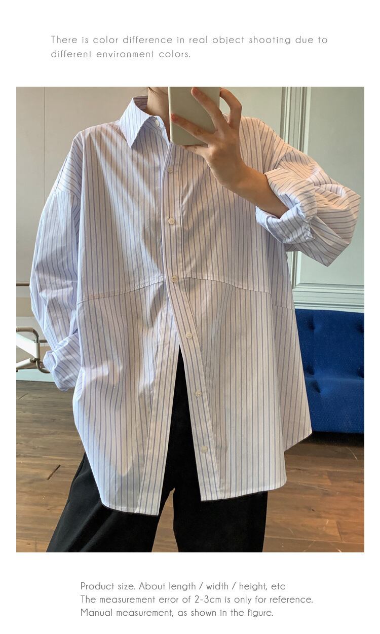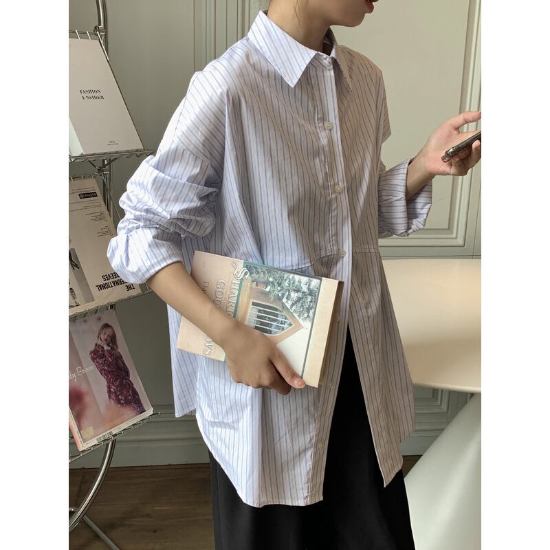♥ ルーズストライプシャツ オータムブルーホワイト ロング 秋物 ♥欧州 ヨーロッパ アイドル ZARA フォーエバー21 GAP H&M WEGO HONEYS MUJI GU UNIQLO dholic babyGAP FOREVER21 Old Navy 韓国 K-POP Kpop 韓流スター BTS TWICE NiziU BLACKPINK ルイ・ヴィトン エルメス グッチ プラダ イブサンローラン シャネル ラフシモンズ CC3251590189 | miel style clothing
