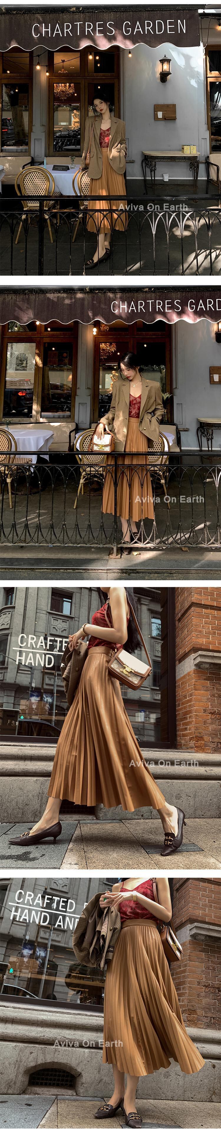 色:フェイクシープスキンのハイレベルプリーツスカート