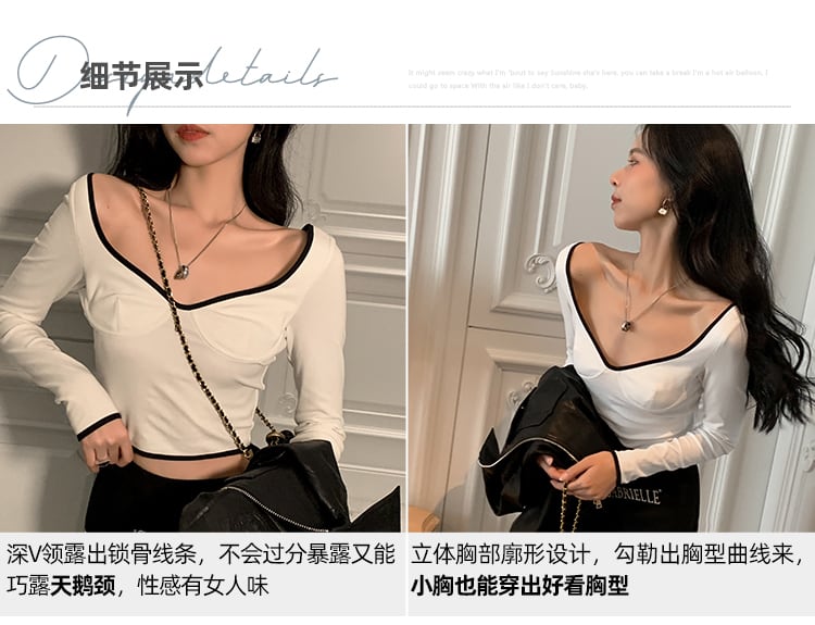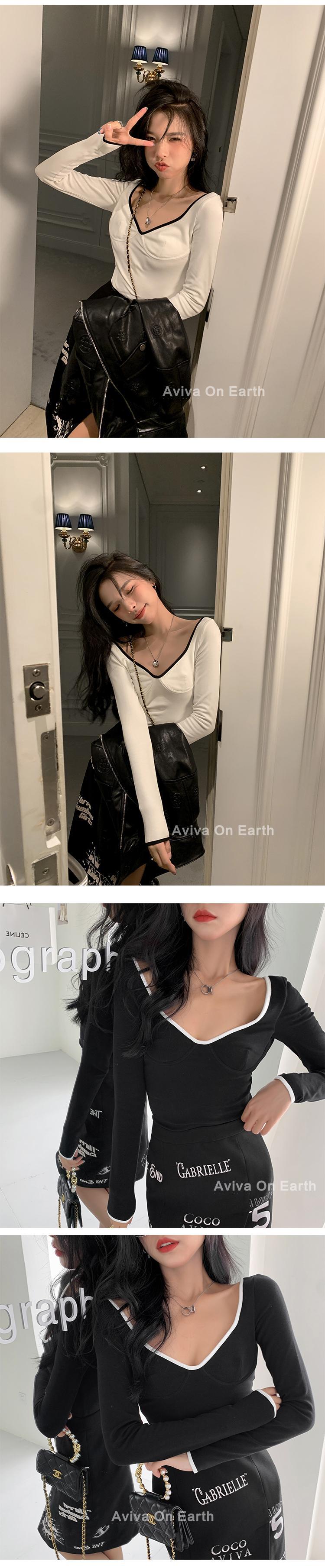 ♥ VネックショートTシャツ 長袖スリーブトップス レディース薄手 ロング ホワイト ブラック ピュア ♥♥欧州 ヨーロッパ アイドル ZARA フォーエバー21 GAP H&M WEGO HONEYS MUJI GU UNIQLO dholic babyGAP FOREVER21 Old Navy 韓国 K-POP Kpop 韓流スター BTS TWICE NiziU BLACKPINK ルイ・ヴィトン エルメス グッチ プラダ イブサンローラン シャネル ラフシモンズ BB12132723092 | miel style clothing