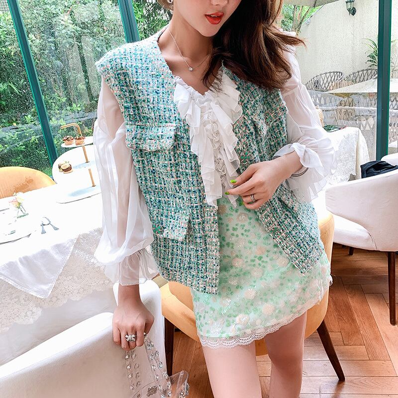 ♥ グリーンツィードノースリーブ格子柄ジャケット ♥♥欧州 ヨーロッパ アイドル ZARA フォーエバー21 GAP H&M WEGO HONEYS MUJI GU UNIQLO dholic babyGAP FOREVER21 Old Navy 韓国 K-POP Kpop 韓流スター BTS TWICE NiziU BLACKPINK ルイ・ヴィトン エルメス グッチ プラダ イブサンローラン シャネル ラフシモンズ BB65101401269 | miel style clothing