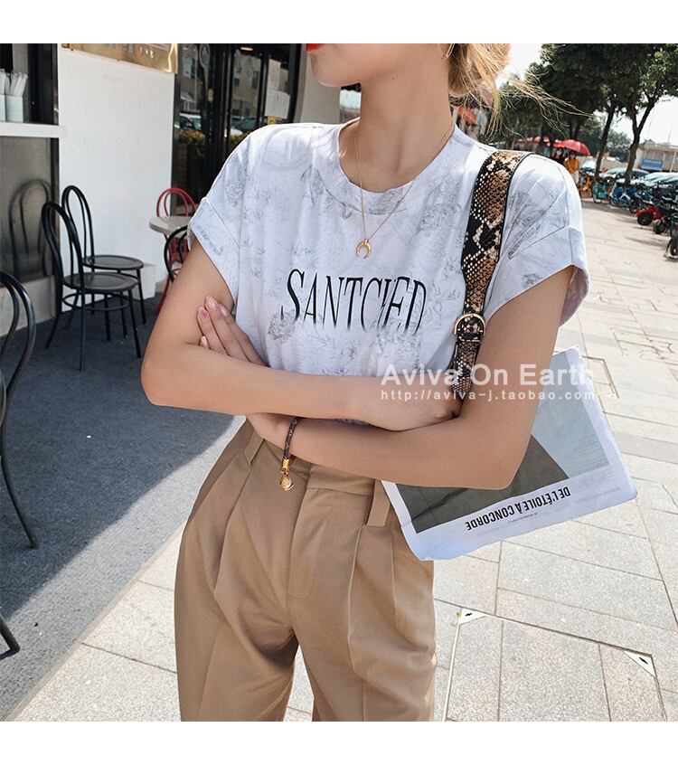 ♥ ホワイトプリントルーズ半袖スリーブラウンドネックTシャツ ショート ハーフスリーブ Oネック ♥♥欧州 ヨーロッパ アイドル ZARA フォーエバー21 GAP H&M WEGO HONEYS MUJI GU UNIQLO dholic babyGAP FOREVER21 Old Navy 韓国 K-POP Kpop 韓流スター BTS TWICE NiziU BLACKPINK ルイ・ヴィトン エルメス グッチ プラダ イブサンローラン シャネル ラフシモンズ BB5323815787 | miel style clothing