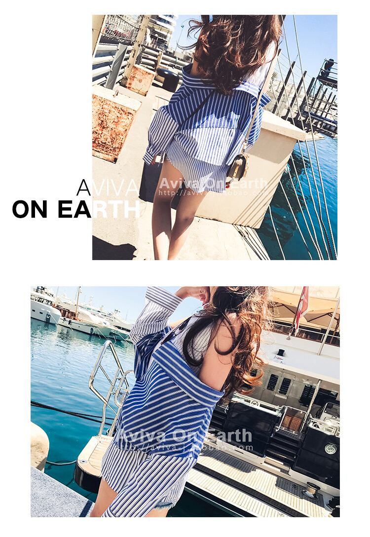 ♥ ブルーホワイトストライプルーズシャツ スタンダード ロング レトロ ♥♥欧州 ヨーロッパ アイドル ZARA フォーエバー21 GAP H&M WEGO HONEYS MUJI GU UNIQLO dholic babyGAP FOREVER21 Old Navy 韓国 K-POP Kpop 韓流スター BTS TWICE NiziU BLACKPINK ルイ・ヴィトン エルメス グッチ プラダ イブサンローラン シャネル ラフシモンズ BB29072121372 | miel style clothing