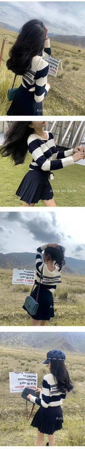 ♥ ネイビーカラーストライプジャカードウールニットセーター Vネック薄手 ♥♥欧州 ヨーロッパ アイドル ZARA フォーエバー21 GAP H&M WEGO HONEYS MUJI GU UNIQLO dholic babyGAP FOREVER21 Old Navy 韓国 K-POP Kpop 韓流スター BTS TWICE NiziU BLACKPINK ルイ・ヴィトン エルメス グッチ プラダ イブサンローラン シャネル ラフシモンズ BB10402676008 | miel style clothing