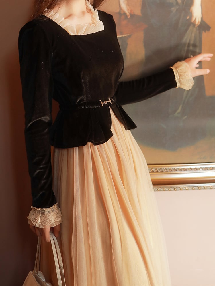 ♥ ベルベットメッシュスカート スタイルブラックドレス オータム 秋物 ♥♥欧州 ヨーロッパ アイドル ZARA フォーエバー21 GAP H&M WEGO HONEYS MUJI GU UNIQLO dholic babyGAP FOREVER21 Old Navy 韓国 K-POP Kpop 韓流スター BTS TWICE NiziU BLACKPINK ルイ・ヴィトン エルメス グッチ プラダ イブサンローラン シャネル ラフシモンズ AA62688566686 | miel style clothing