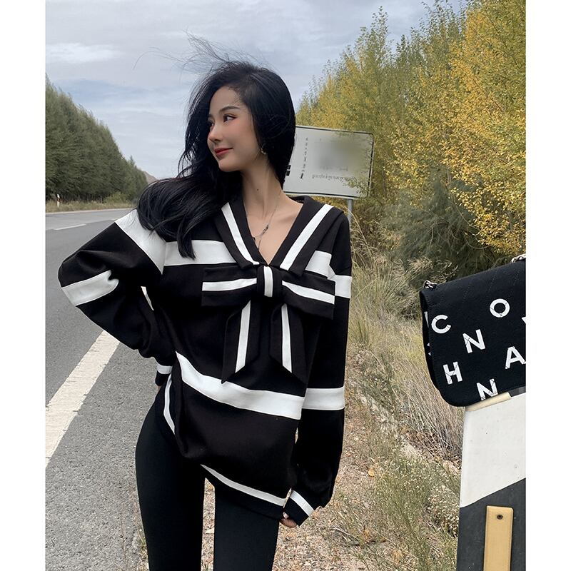 ♥ Vネックネイビースウェット ストライプルーズトップス リボン ♥♥欧州 ヨーロッパ アイドル ZARA フォーエバー21 GAP H&M WEGO HONEYS MUJI GU UNIQLO dholic babyGAP FOREVER21 Old Navy 韓国 K-POP Kpop 韓流スター BTS TWICE NiziU BLACKPINK ルイ・ヴィトン エルメス グッチ プラダ イブサンローラン シャネル ラフシモンズ BB29622604515 | miel style clothing
