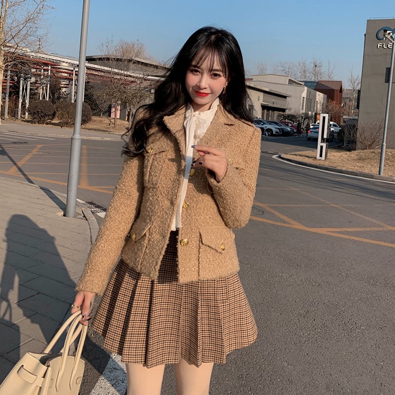♥ カーキツィードメタルバックルウールショートコート ♥♥欧州 ヨーロッパ アイドル ZARA フォーエバー21 GAP H&M WEGO HONEYS MUJI GU UNIQLO dholic babyGAP FOREVER21 Old Navy 韓国 K-POP Kpop 韓流スター BTS TWICE NiziU BLACKPINK ルイ・ヴィトン エルメス グッチ プラダ イブサンローラン シャネル ラフシモンズ BB79015208404 | miel style clothing
