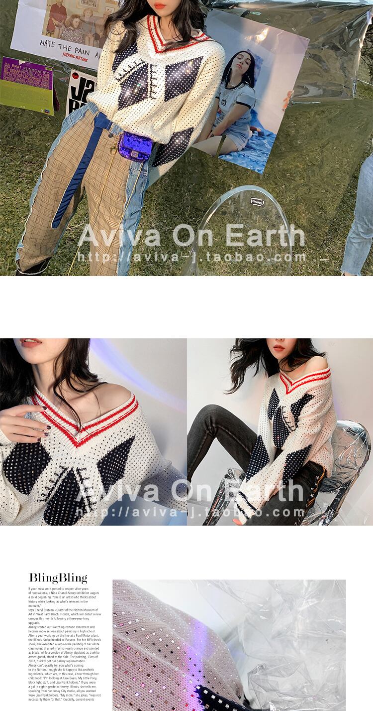 ♥ ラインストーンホワイトセーター オータムルーズVネックジャカードニット レッド 刺繍 秋物 ♥♥欧州 ヨーロッパ アイドル ZARA フォーエバー21 GAP H&M WEGO HONEYS MUJI GU UNIQLO dholic babyGAP FOREVER21 Old Navy 韓国 K-POP Kpop 韓流スター BTS TWICE NiziU BLACKPINK ルイ・ヴィトン エルメス グッチ プラダ イブサンローラン シャネル ラフシモンズ BB57368216216 | miel style clothing
